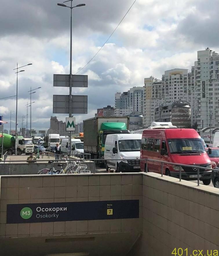 В очереди к мосту стоят сотни машин, а начинается скопление транспорта еще от станции метро «Харьковская».