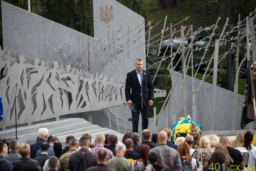Мэр Киева Виталий Кличко принял участие в церемонии открытия Мемориала памяти погибшим киевлянам-участникам АТО/ООС на розе улицы Грушевского и Петровской аллеи, до этого возложив цветы к Стене памяти погибших защитников Украины в российско-украинской войне.